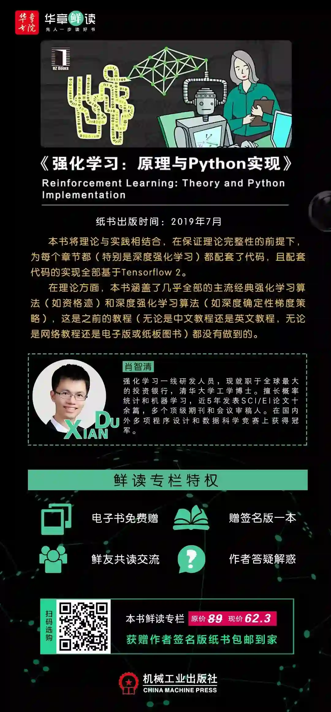 关于作者:肖智清,强化学习一线研发人员,清华大学工学博士,现就职于全球知名投资银行。擅长概率统计和机器学习,于近5年发表SCI/EI论文十余篇,是多个国际性知名期刊和会议审稿人。在国内外多项程序设计和数据科学竞赛上获得冠军。