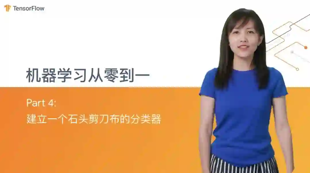 第四集: 你将学习如何构建一个剪刀石头布的分类器。在第一集中,我们用这个例子展现了如何用传统代码来检测和分类它们的难度。随着我们对机器学习的深入了解,我们已经学习了如何构建神经网络:从探测原始像素中的模式到对其进行分类,再到使用卷积检测特征。在本集中,我们将本系列前三集的所有内容都整合在一起。