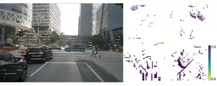 上图所示的是提出的自监督学习的基本框架。在训练阶段,模型的输入是前后两帧点云数据,以及对应的图像数据。该模型的输出是点云中动态目标的运行状态。值得一提的是,图像数据仅仅用于训练阶段提供正则约束,在推理阶段,仅有上图所示上半部分点云相关的分支,因此在推理阶段模型十分高效。