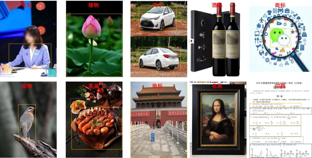 (4)学术上检测数据库基本拍摄风格较为一致,而我们面对的是电商、植物、动物、汽车、酒标、菜品、地标、商标、切题等多源异构的数据,对模型的泛化性要求更高。