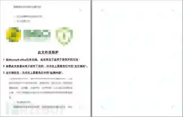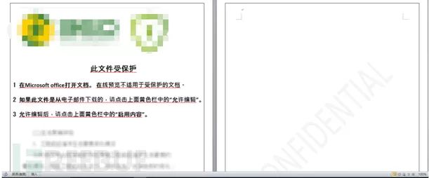 安天CERT(安全研究与应急处理中心)在2018年12月至今,捕获多例针对中国用户的恶意宏文档攻击样本。这些恶意文档通过在模糊的文字背景上伪装出杀毒软件的安全检测结果,诱导受害者启用恶意宏代码,向Word进程自身注入Shellcode,最终在内存中解密和运行后门程序。根据对该后门的深入分析,我们发现该样本来自海莲花组织。