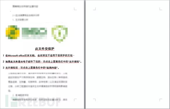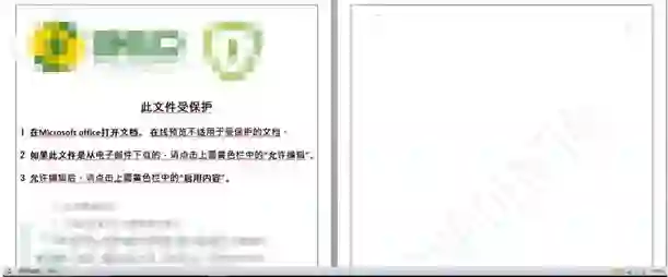 相关文档样本采用了社会工程技巧,伪装出360杀软的安全检测结果,诱导受害者启用附带的恶意宏,其正文内容见图2-1、图2-2所示。