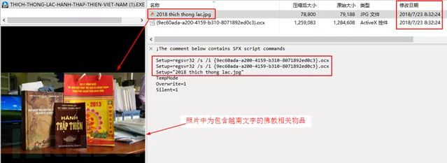 通过样本关联我们找到了更早的时间内,使用相同手法攻击柬埔寨等国的自解压样本: