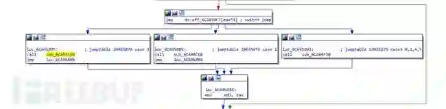 3.后门会针对受害主机生成一个指纹,其支持的功能包括:进程操作、注册表操作、获取硬盘信息、本地文件操作、释放和执行程序、内存注入等,同之前ESET曝光的版本没有大的变化。如下图所示,case 0x1 移动文件、case 0x3 获取硬盘信息、在case 0、2、4、5还包含:0xe 文件遍历、0xf 删除文件、0x12 创建文件夹、0x13删除文件夹。