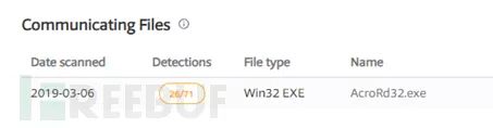 在分析后门C2唯一解析IP:45.122..的时候,我们注意到了该IP曾被一个伪装成Adobe Reader主程序的恶意自解压程序“AcroRd32.exe”作为C2连接使用: