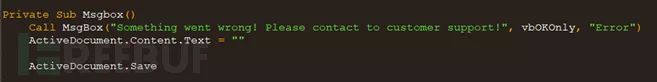 4.打开已复制文档调用vb模块中的“x_N0th1ngH3r3”函数如下图所示,之后,恶意文档显示一个虚假消息,如图2-5、图2-6所示: