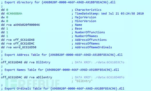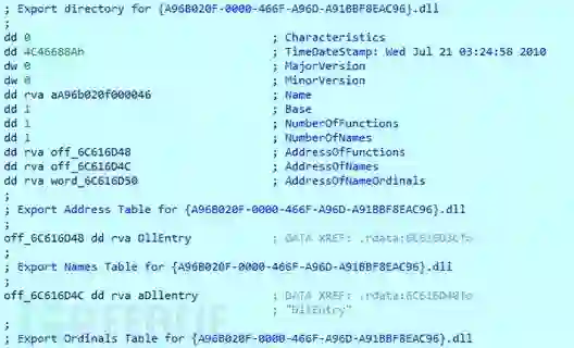 后门程序的原始名称为“{A96B020F-0000-466F-A96D-A91BBF8EAC96}.dll”,见下图:
