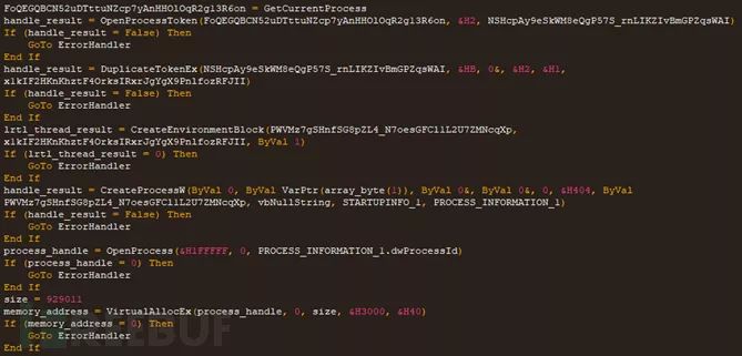 第三段脚本解密出shellcode,并将其注入到winword.exe进程中。脚本入口函数仍然命名为“x_N0th1ngH3r3”,此函数会区分64位或32位进程,采用适当方式进行进程注入: