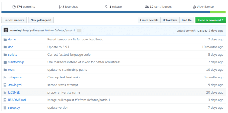 还有一个办法,是从 github 存储库的源代码安装,这可以使基于 StanfordNLP 的开发和模型训练具有更大的灵活性。