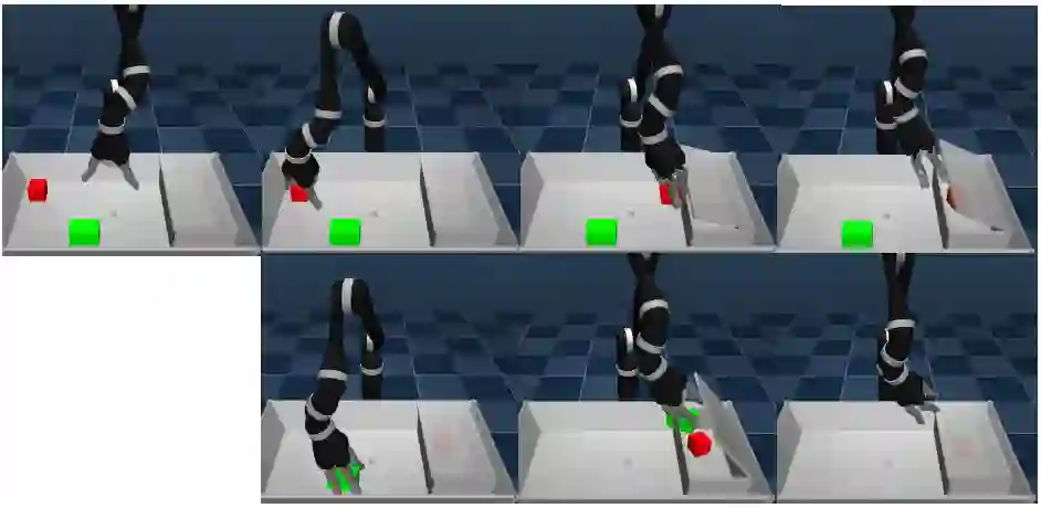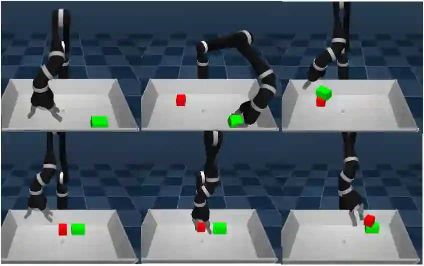尽管本文所提出的方法通常来说适用于更为广泛的问题,但我们主要在一个具有稀疏奖励的典型机器人操作应用程序上对我们的方法加以讨论:将各种目标堆叠起来和清理桌子。