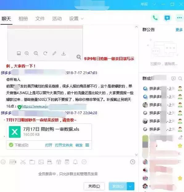 笔者当初在研究拼多多之时,曾在注册拼多多账户之后10分钟,进入拼多多商家的QQ群,从中了解到拼多多体系选择爆品的严苛性和运营人员的高效率。