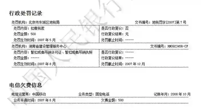 更重要的是,如今在一些征信平台的试点城市,电信欠费已经与水电煤欠费一样,被纳入个人征信报告。此前还有媒体做过调查,在央行的个人征信平台里可以查询三方面的信用记录:个人信用信息提示、个人信用报告、个人信用信息概要,其中会有详细的最近5年内的贷款记录、准贷记卡透支超过60天的信用记录,另外还包含明细信息,包括欠税、民事判决强制执行以及电信欠费记录等等。