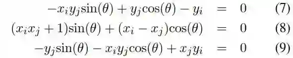 如果平移的三个参数有一个已知,就只需要1个关联点对就可以得到结果,这在一个合适的有界范围内对一个合适的参数进行离散采样是可能的。重写方程(12)得到: