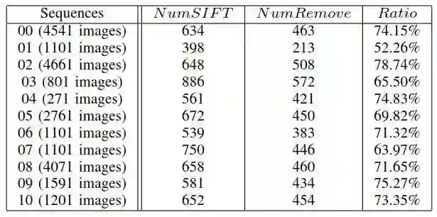 表4 对于所有KITTI影像序列内点恢复率