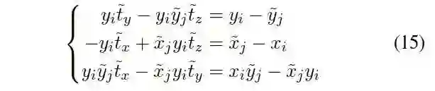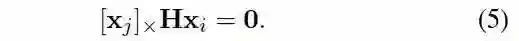 为了进一步消除尺度参数,在方程(1)两边同时乘以一个反对称矩阵得到: