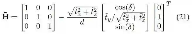 将相机朝向固定为重力方向后得到的H矩阵等式,t=[tx,ty,tz],上面的方程仍然有4 DOFs.