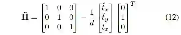 深度d未知,但是可以直接归入平移参数中去,所以可以通过方程(5)得到下面的方程组: