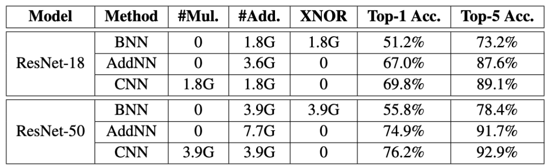 虽然深度神经网络的二值化滤波器大大降低了计算成本,但原始识别精度往往无法保持。此外,二进制网络的训练过程不稳定,通常要求较慢的收敛速度和较小的学习速率。经典CNN中的卷积实际上是测量两个输入的相似性。研究人员和开发人员习惯于将卷积作为默认操作,从视觉数据中提取特征,并引入各种方法来加速卷积,即使存在牺牲网络能力的风险。但几乎没有人试图用另一种更有效的相似性度量来取代卷积。事实上,加法的计算复杂度要比乘法低得多。因此,作者有动机研究用卷积神经网络中的加法代替乘法的可行性。