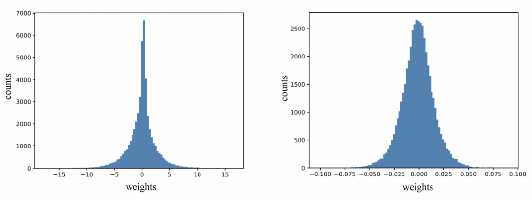 对LeNet-5-BN的第三层进行可视化,AdderNet权重更接近Laplace分布,CNN的权重近似高斯分布,分别对应L1-norm和L2-norm。