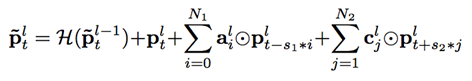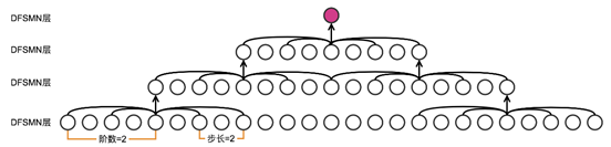 上文已经提到,除了直接增加各层的记忆模块的阶数之外,增加模型的深度也能间接增加预测当前帧的输出时模型可以利用的上下文的长度,上图给出了一个例子。