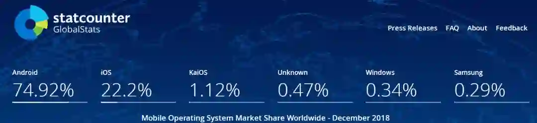 根据 Gartner 在 2015 年的研究,96.8% 的智能手机在 Android 或 iOS 上运行。
