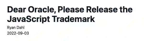 随着时间来到当下,Oracle 再次因为曾经收购带来的后续问题,引发了争议。9 月 3 日, Node.js、Deno 之父 Ryan Dahl 在博客上发布了一篇标题为《Dear Oracle, Please Release the JavaScript Trademark》的文章,斥责 Oracle 拿着 JavaScript 商标却不做贡献,在众多工程师在使用 JavaScript 时还需要时刻提防其商标背后的种种陷阱,搞得大家心力憔悴,因此他呼吁:Oracle 交出 JavaScript 商标。