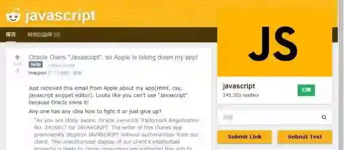 其实对于 JavaScript 的商标归属权问题,曾在 2018 年,便有 iOS 开发者吃过了不知 JavaScript 商标归属的亏。彼时一位 iOS 开发者在其应用程序名称中使用了 JavaScript,没多久,他收到了苹果公司的一封邮件,以及遭到了 Oracle 要求停止侵权的通知。