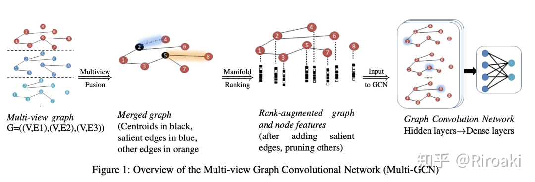 《Graph convolutional networks for multi-view networks, with applications to global poverty》提出了将多重图降维到单重图的方案,使用子空间分析(subspace analysis)进行并对图进行裁剪,从而合并到一个单重图。此后使用简单GCN就可以处理了。