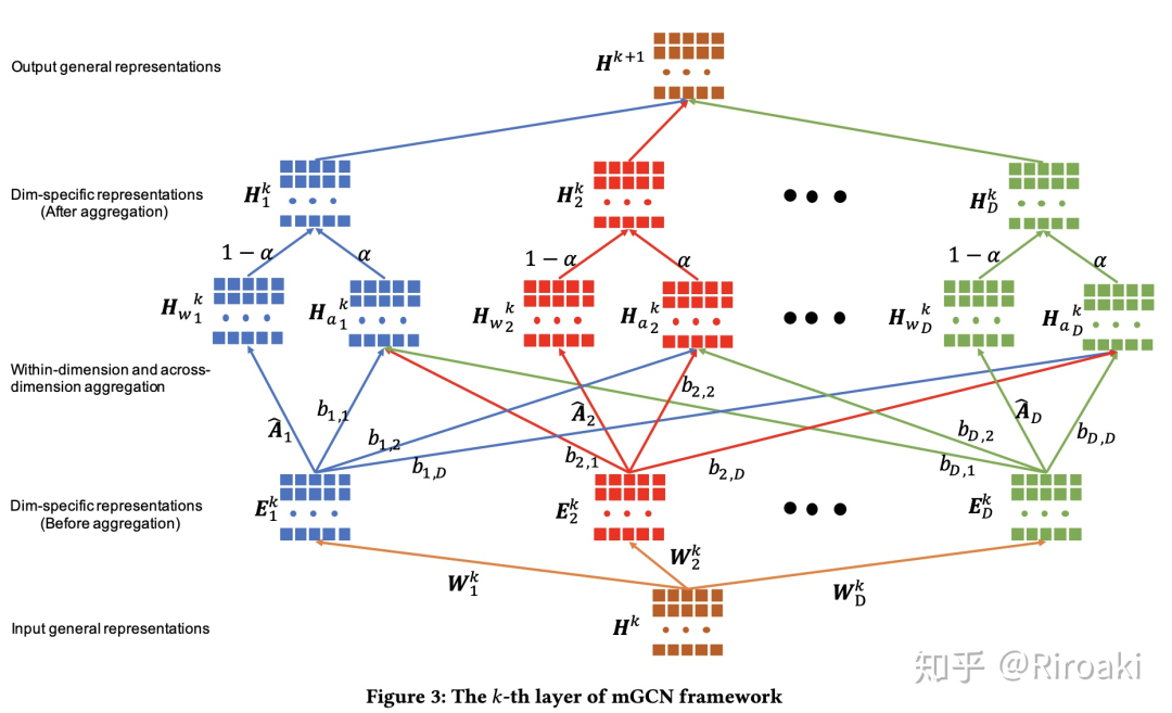 目前有人提出了GCN的特殊变种以适应这一问题(《Multi-dimensional graph con- volutional networks》),使用不同的表示来描述不同关系维度的同一个节点,而这些表示被视为更泛化的表示在这些维度上的投影,并设计了一种聚合方式可以同时考虑同层不同节点的交互和不同层统一节点的交互。