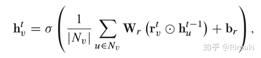 这样做的好处在于把边的类型转化为节点类型,在新的图中是不存在边的类型的。这么做的有G2S网络,把AMR(Abstract Meaning Representation)图转化为Levi图并使用GGNN(Gated Graph Neural Network,是一种图循环网络GRN,在之前的文章里有简单介绍)。G2S的节点编码部分传播过程如下: