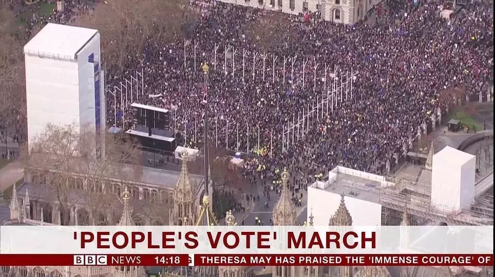 为了抗议这些肉眼可见的不便,上百万英国民众聚集在伦敦的大街上游行,要求政府再公投一次。