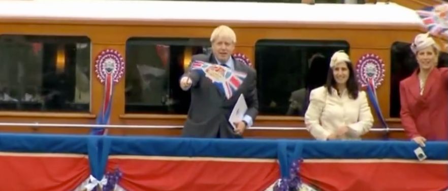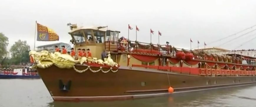 英国女王登上一艘租来的游艇,在数百艘小游艇和帆船的陪伴下,举行了“阅舰式”