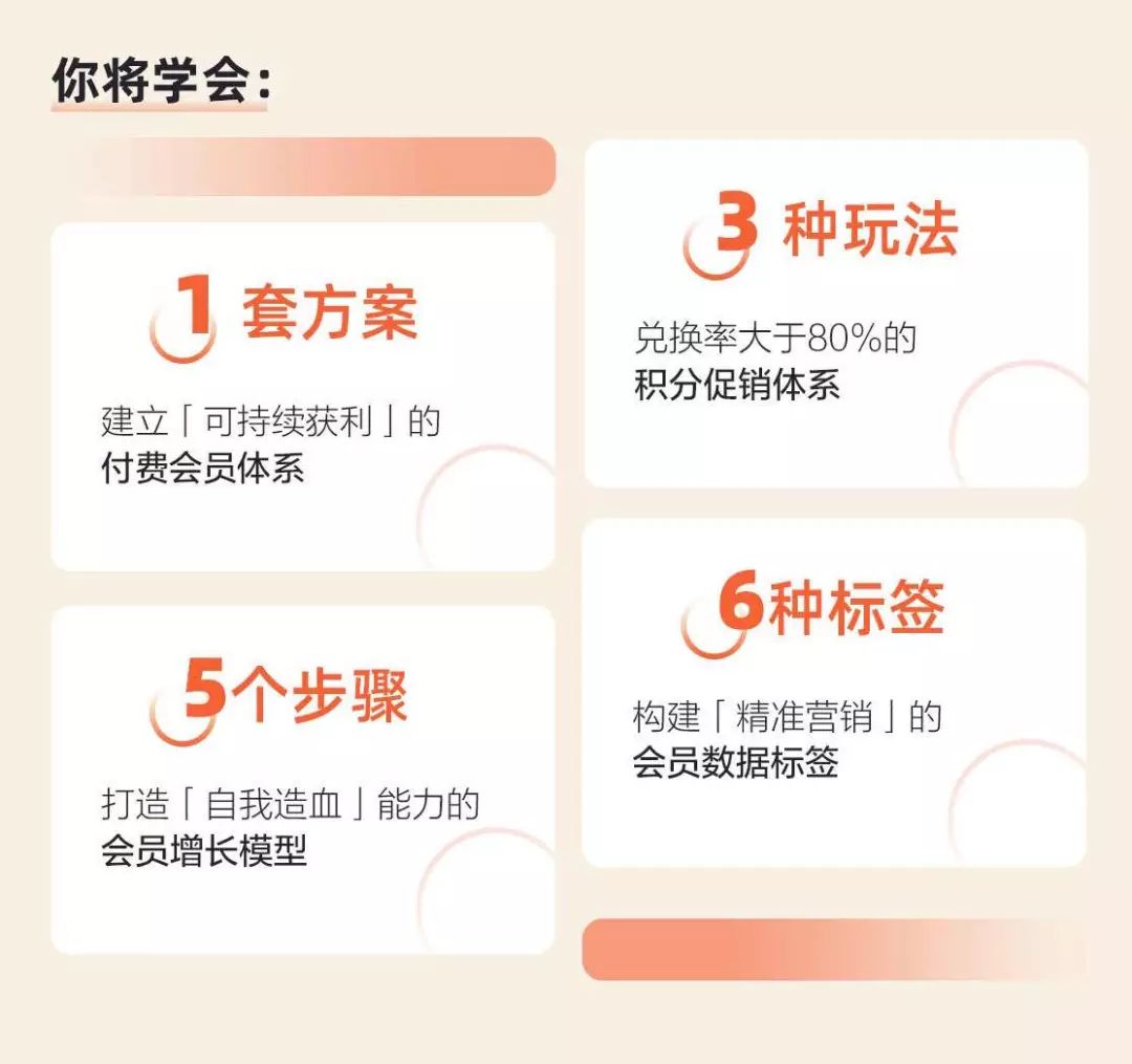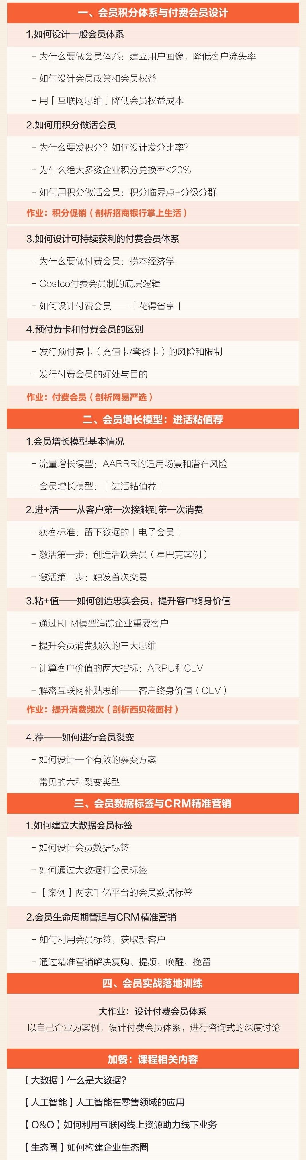 这堂课,将提供给你一套完整会员增长体系,无论你是市场、运营、CRM等部门负责人还是电商、餐饮、商超便利、服装、酒店、母婴、生鲜、食品、美发等零售行业,都能帮助你学会