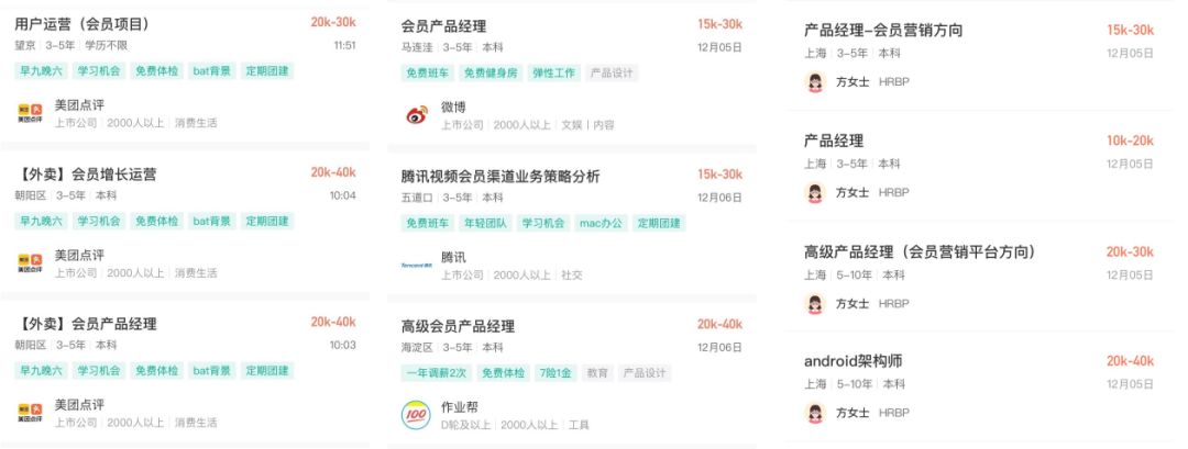 工作3-5年的会员岗,美团点评、新浪微博、腾讯都开到了20-40K的薪水。