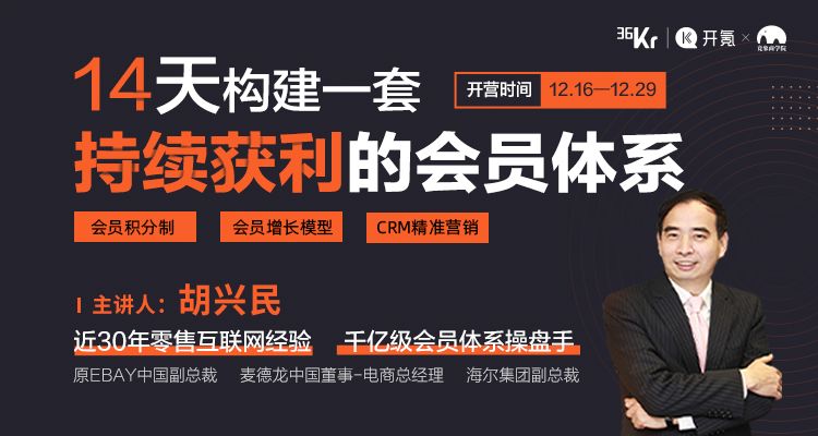 36氪x开氪与原eBay中国副总裁、麦德龙中国董事电商总经理、海尔集团副总裁,30年互联网零售行业经验的胡兴民老师一同打造的《14天会员增长实操训练营》。