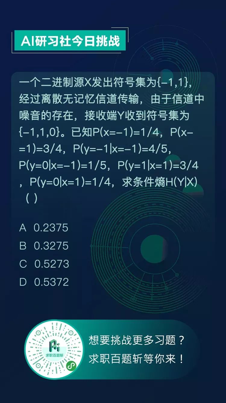 点击今日推文【第4条】或 在公众号回复“0110挑战”即可答题获取!
