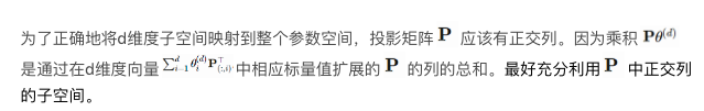 ,其中 d < D。在一个优化更新期间,只使用更小的子空间