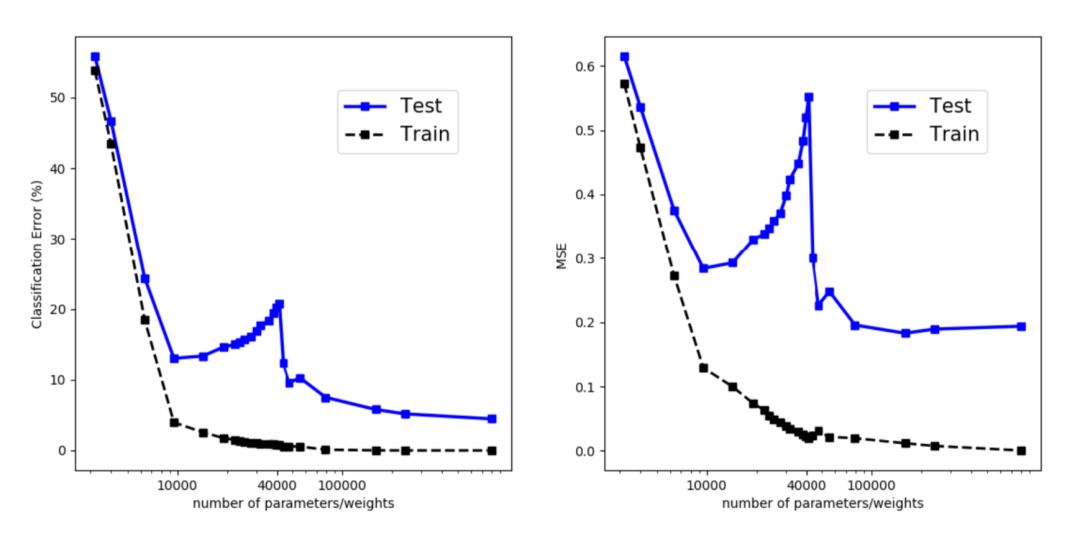深度学习模型是严重过度参数化的,在训练数据上通常可以获得完美的结果。以传统的角度来看,这就像偏差 - 方差权衡,可能是个灾难,没有东西可以泛化到还没看到的测试数据。然而,在通常情况下,这样的“过拟合”(训练误差 = 0)深度学习模型仍然在样本外测试数据上表现不错。这很有趣,原因是什么呢?