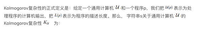 Kolmogorov 复杂性依赖于现代计算机的概念来定义对象的算法(描述性)复杂性:描述对象的最短二进制计算机程序的长度。继 MDL 之后,计算机本质上是最通用的数据解压器形式。