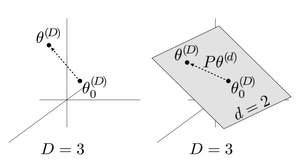 我打算讨论关于这个问题的最新方法,该方法被称为 内在维度(Li 等人,2018)。内在维度直观,易于测量,同时还揭示了不同规模模型的很多有趣特性。