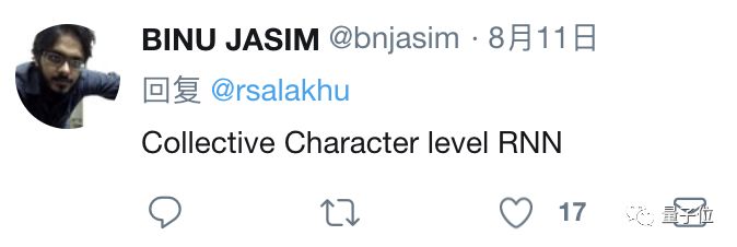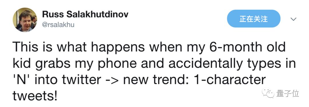 木有什么TwitteRNN,也木有什么新的神经网络,“就是我6个月的娃拿我的手机瞎玩发了条Twitter。”