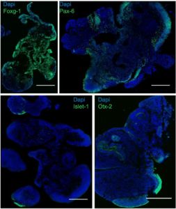 在他们研究的两种方案中,一个共同的重要步骤是搅拌干细胞的悬浮液,这个步骤会影响营养物的混合和施加于细胞的剪切应力水平。然而,在这两种方法中,研究人员通过使用轨道振动器或称为SpinΩ的3D打印旋转设备来实现这一点。通过测试不同的条件并进行计算流体动力学分析,研究人员确定使用标准轨道振动器并按照他们的建议进行修改不仅可行而且有效。他们还发现,在培养30天后,类器官产生了大脑不同区域的标志物,表明干细胞已经发育为大脑中的一系列细胞类型。这表明作者所用的方法可以用来开发模型用于研究大脑的分散区域以及影响它们的过程,并且比以前的方法更准确。