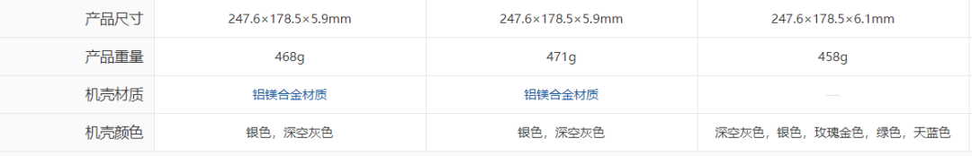 机身尺寸方面,长宽三款机子都相同,可是高度方面iPad Air4略高了0.2mm。
