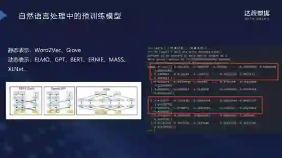 如上图所示,我们在网上找了一些登贝莱的新闻补充到《人民日报》等语料里一起训练。在完全没有修改,只是重新训练了预训练模型的情况下,“登贝莱”就成了一个词。这说明深度学习的预训练模型,可以非常好地捕捉到上下文,而且我们知道大部分的神经网络的语言模型训练是非监督学习,所以不需要很多标注数据。可以有很大数据量。总体来说数据越多,模型会学得越准,效果越好。BERT训练了一两千万的中文后,可以达到非常好的效果,我觉得这是个大力出奇迹的模型。