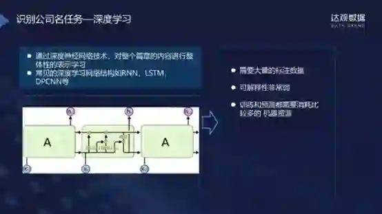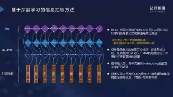 而如果要用深度学习的方法做信息抽取,就需要比较多的机器资源,可能还需要更多的标注数据,才能在深度学习的算法上获得较好的效果。