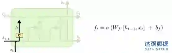 图中有两个量x_t和h_t-1。x_t就是当前的输入,h_t-1是上一时刻的隐层的输出。这个公式求出来一个0-1之间的值,决定要留下多少东西。(任何东西乘以0-1其实就是计算要留多少东西,乘以0什么都留不了,乘以1就都留下,乘0.8就留80%。)