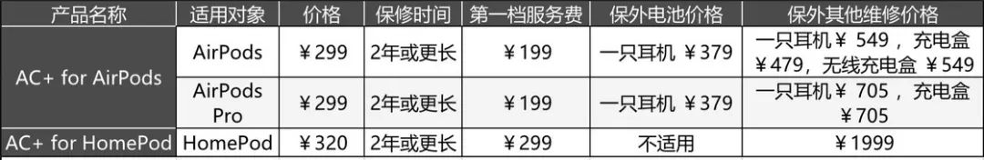 Apple 在之前为耳机产品也增加了 AppleCare+ 服务,价格如下: