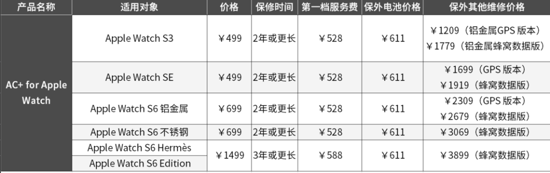 下面是所有中国大陆在售的 AC+ 计划的整理,价格可能在未来发生变动: