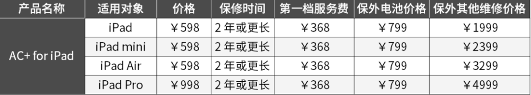 像 iPad 系列大家几乎都不会一出新款就购买,大家都习惯性会用 2-3 年,加上笔和键盘保外维修起来价格也非常昂贵,这个时候就不妨考虑一下 AC+。而且由于政策的改变,也不会担心万一 iPad 配件把两次保外维修机会都用完了怎么办。