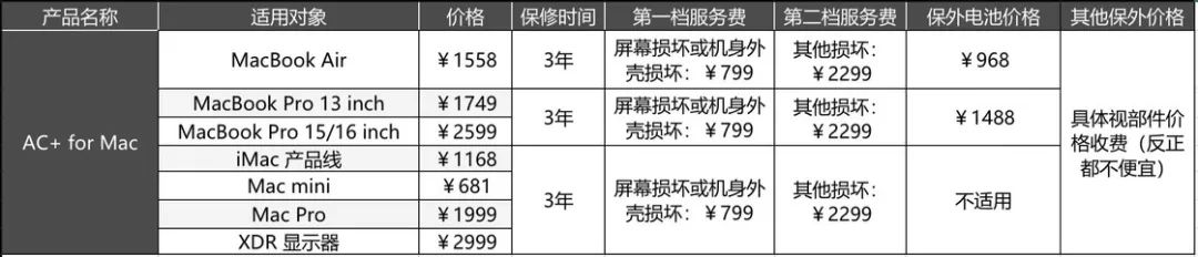 所以对于想要长期使用某一设备的人群来说购买 AC+ 几乎是一个稳赚不赔的选择。